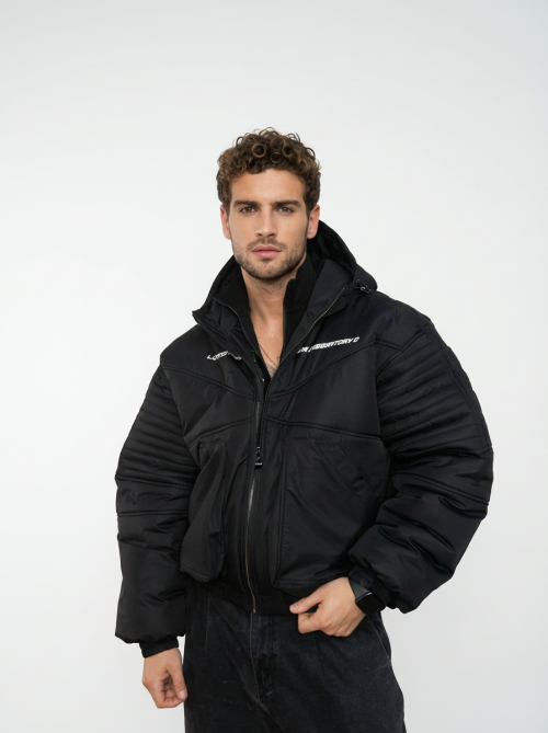 Крутой зимний бомбер с капюшоном и фиксатороми. Вдохновлен джинсовым МОТО бомбером из осенней коллекции.